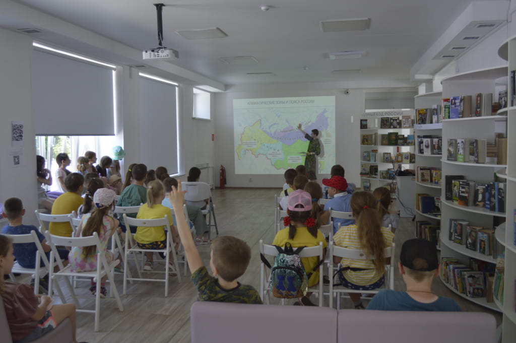 Виртуальное путешествие «От Москвы до самых до окраин» совершили сегодня ученики школы №46, пришедшие в Есенинку (ул. Космонавтов 15/3). Накануне Дня России ребята узнали, на гербе какого города нашей страны можно увидеть древнего мамонта, какой из её уголков следует посетить, чтобы попасть в Озёрный край, где услышать нивхский язык, почему камни острова Чамп долгие годы вызывают споры учёных всего мира и многое другое. Вместе с сотрудниками библиотеки и детьми «путешествовали» и учителя.