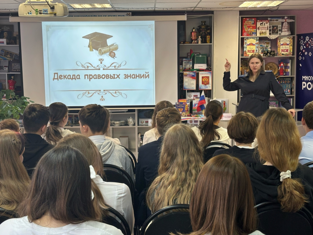 В библиотечно-информационном центре национальных культур (ул. Московская, 117) ученики седьмого класса школы № 59 «Перспектива» встретились с Викторией Кретовой – инспектором ПДН отдела полиции № 2 УМВД г. Липецка. Виктория Владимировна рассказала школьникам о самых распространённых правонарушениях среди подростков. Обсудили актуальные вопросы, связанные с ответственностью, безопасностью и правилами поведения. Ребята узнали, за какие действия наступает административная и даже уголовная ответственность, а также поговорили с инспектором, как избежать неприятных ситуаций и не нарушить закон.