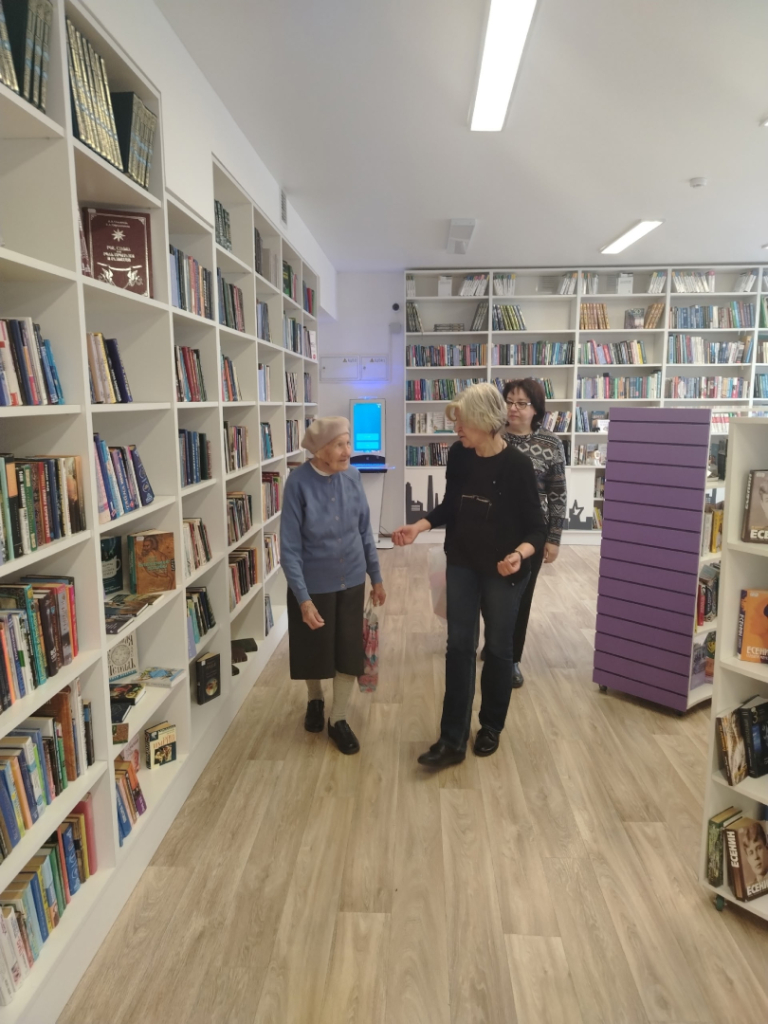 Несмотря на почтенный возраст, гостья прошла по всем залам библиотеки, оценив её удобство, а также красоту и многообразие фонда.
