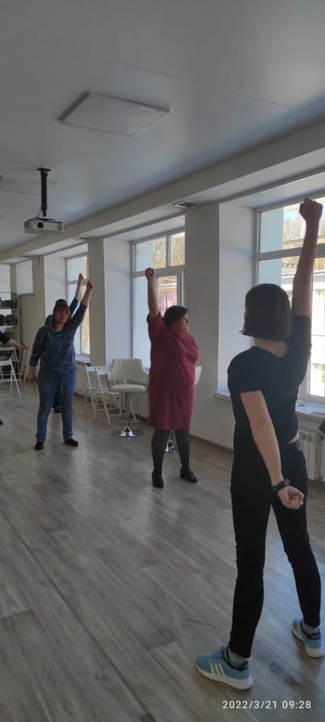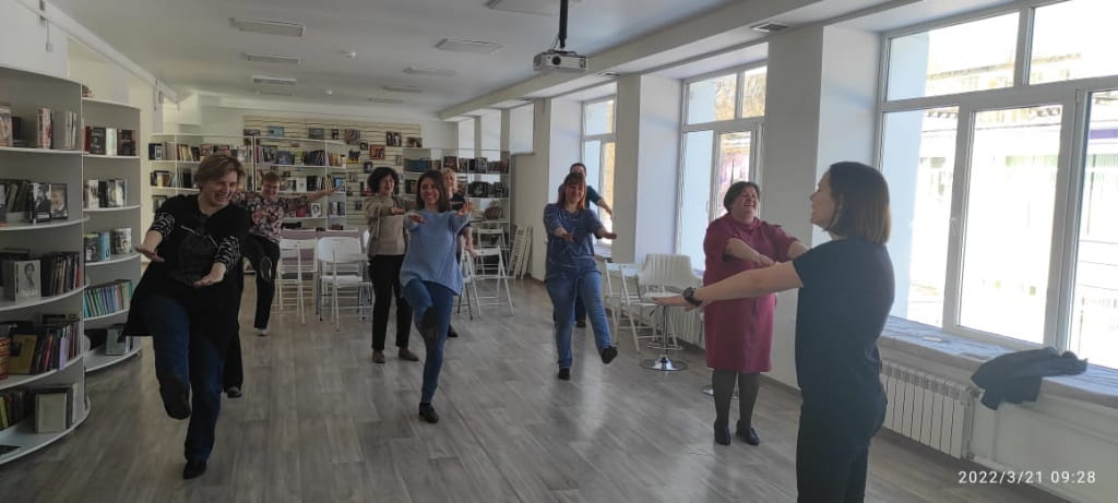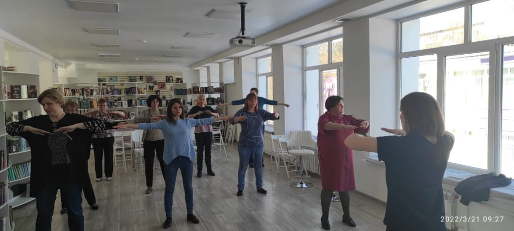В Центральной городской библиотеке имени С. Есенина в рамках программы «Навигатор здоровья» сотрудники проводят утреннюю зарядку.